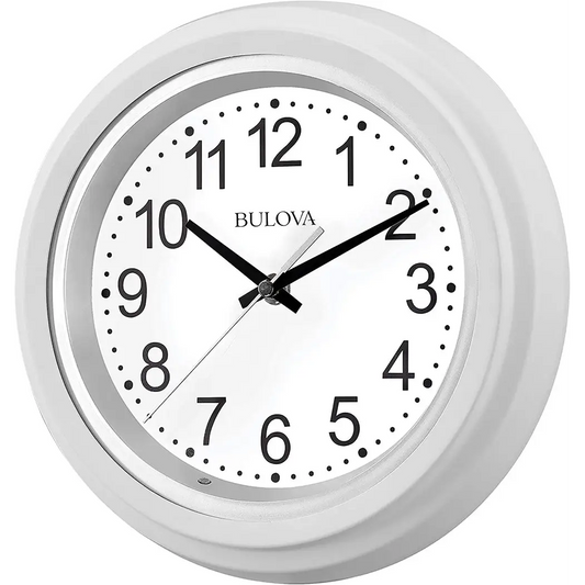 Bulova Night Vision Fully Backlit Dial Quiet Sweep 10" White Wall Clock C4865
