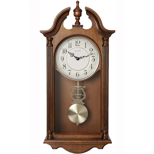Bulova Avent Wooden Two-tone Walnut and Mahogany with Pendulum Wall Clock C3383