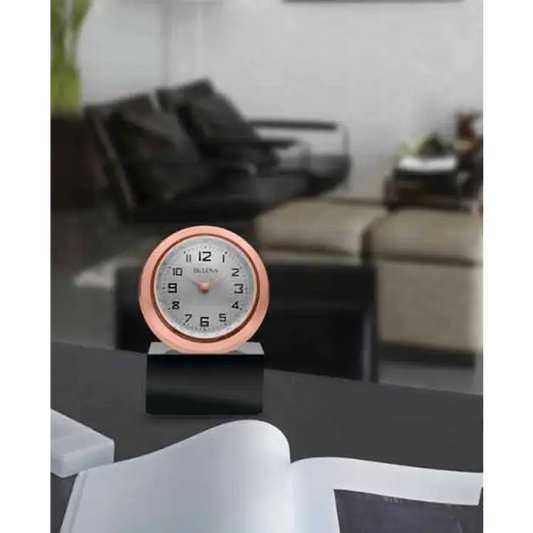 Bulova Sphere Analog Quartz Rose Gold Tone Tabletop Clock B5015